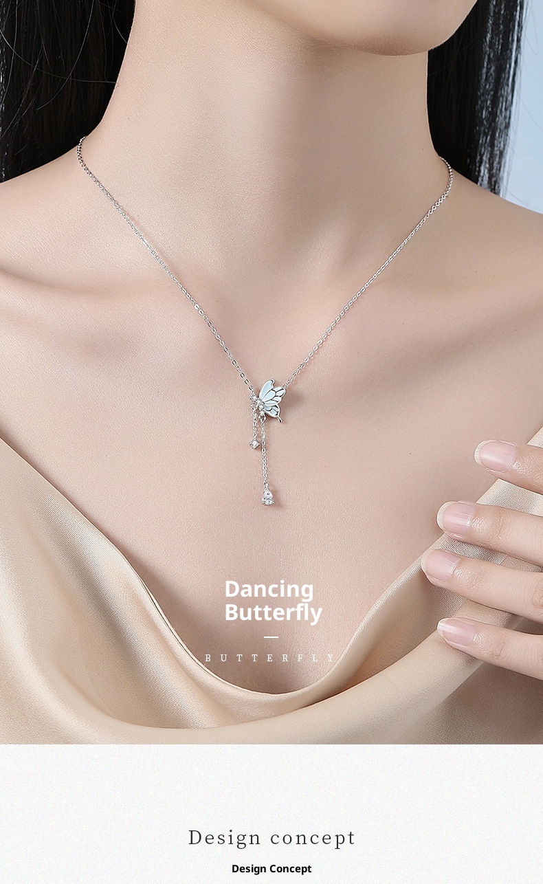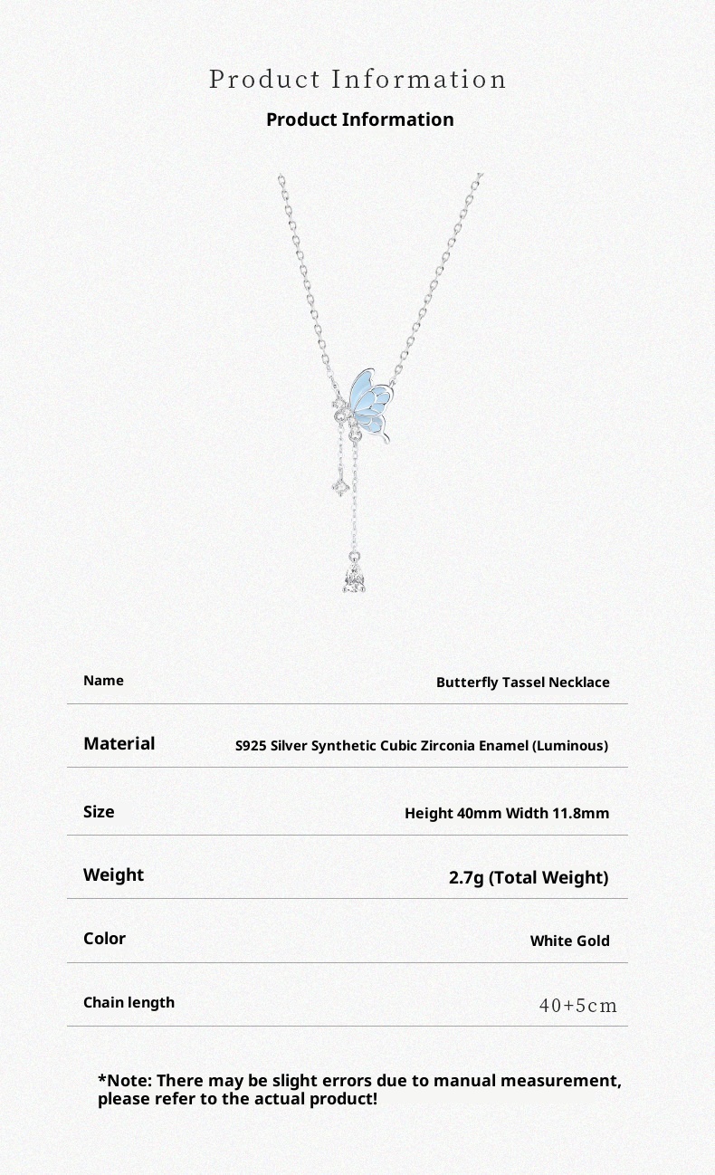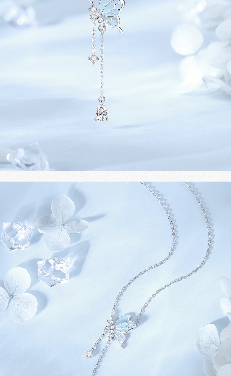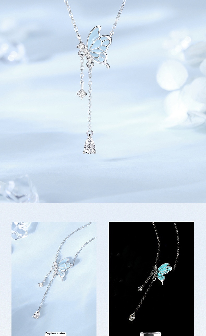 Sterling Silver S925 Butterfly Tassel Noctilucent Necklace