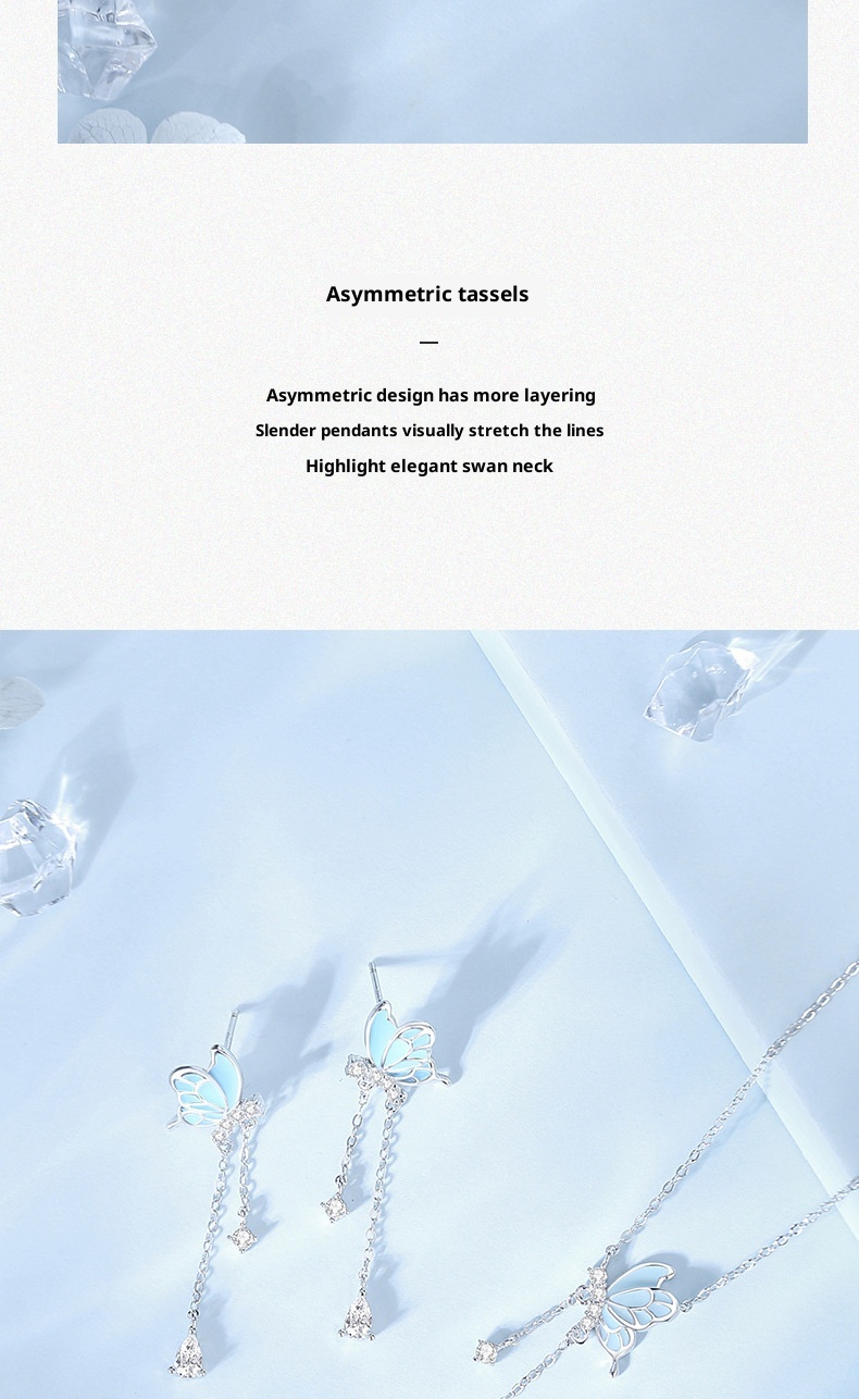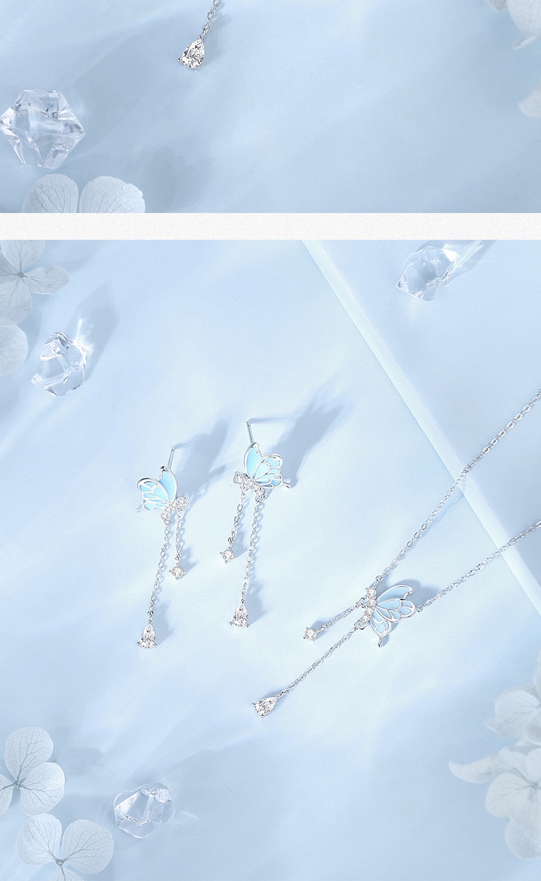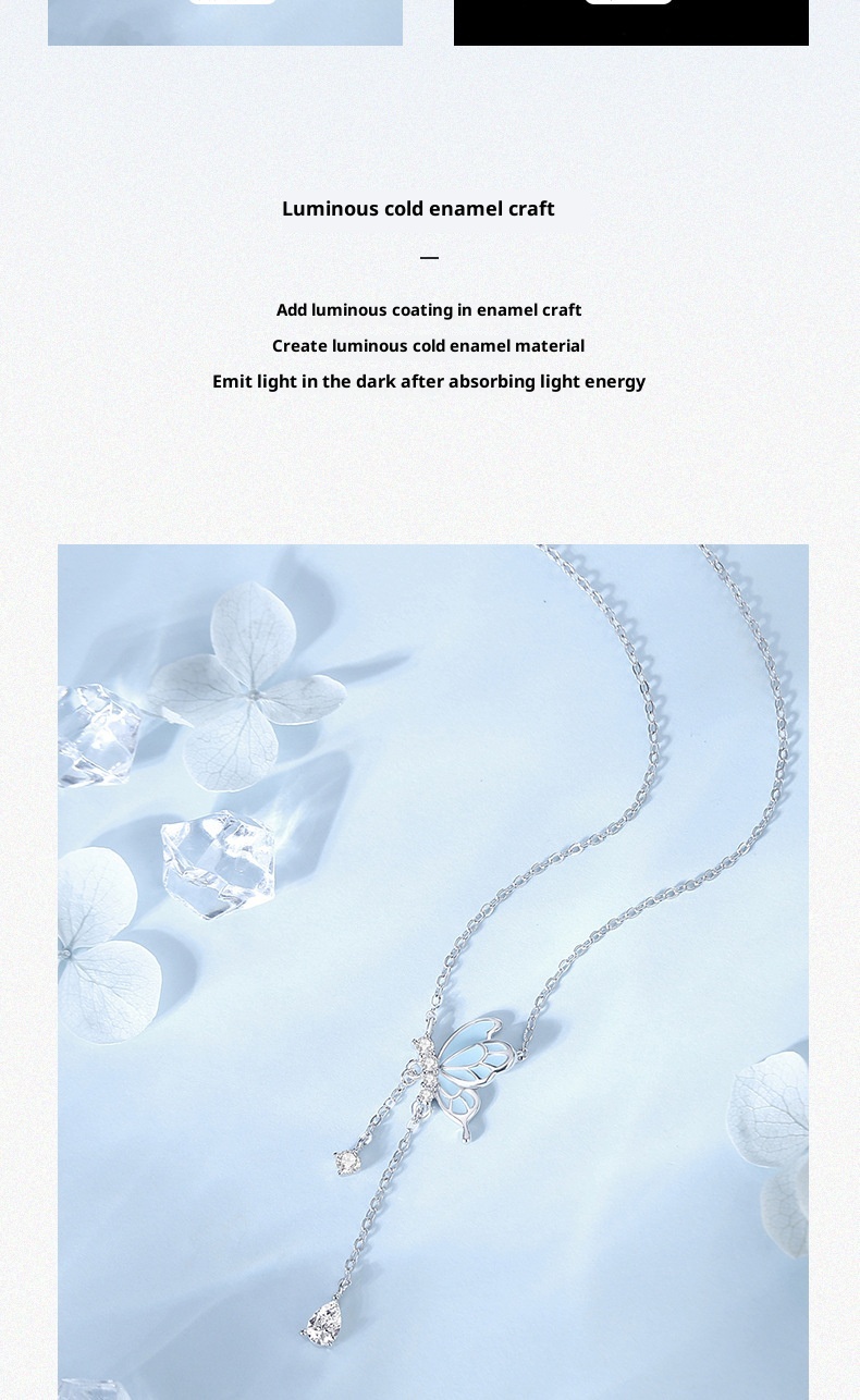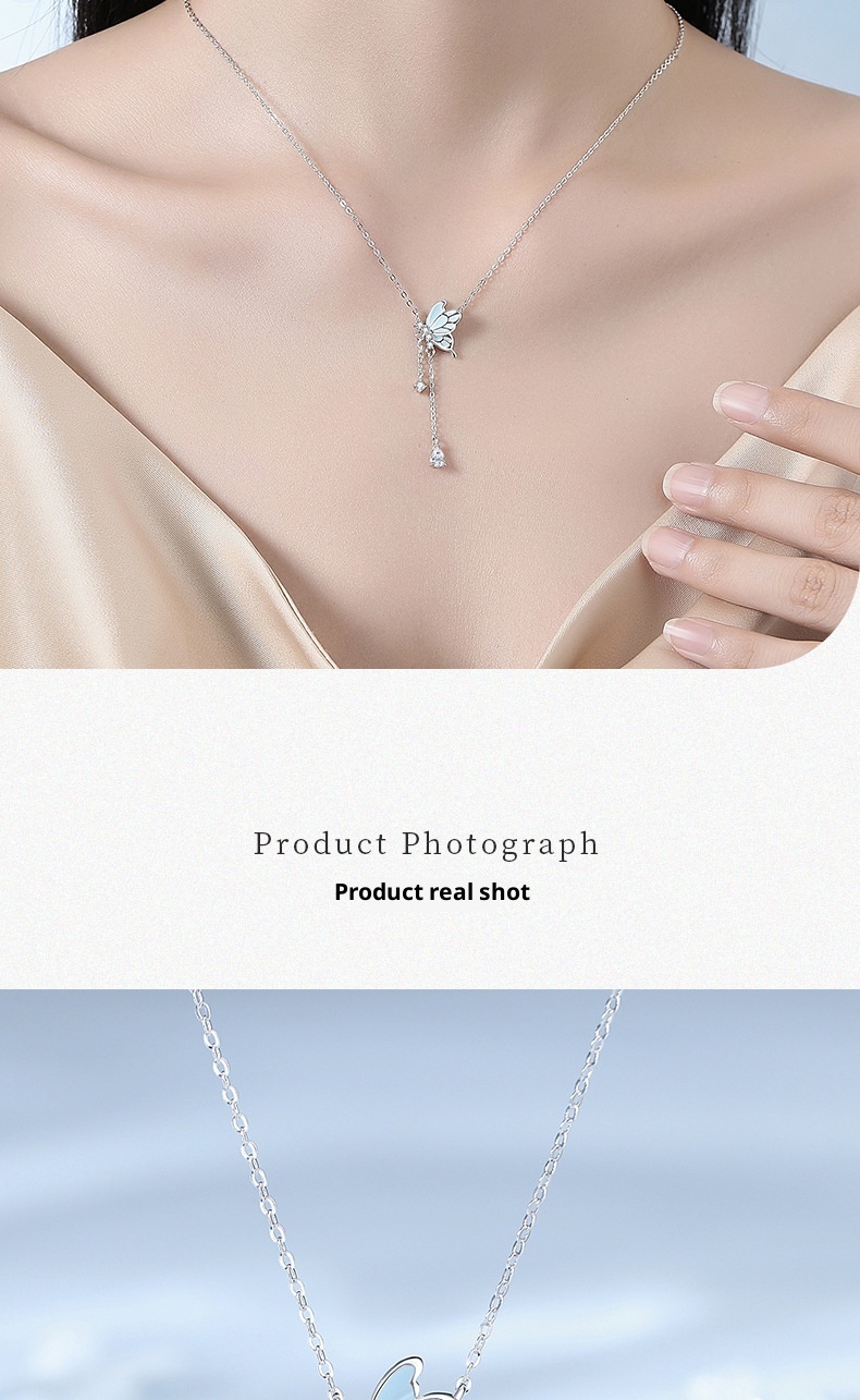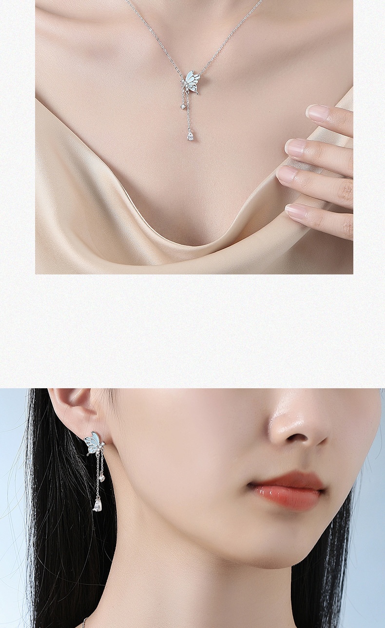 Sterling Silver S925 Butterfly Tassel Noctilucent Necklace